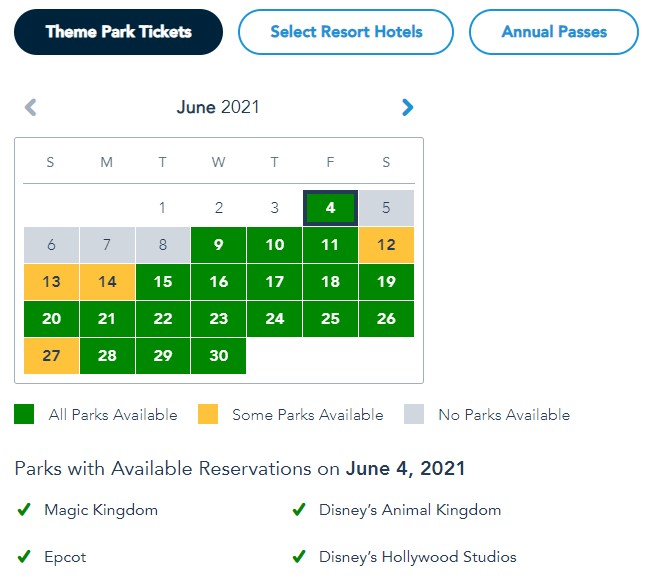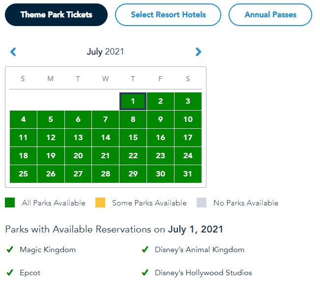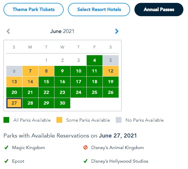Before today, you would have tough luck finding Park Passes for the next two months as most dates were yellow and some were even completely greyed out. Now, that’s changed as Park Passes were added to both months.