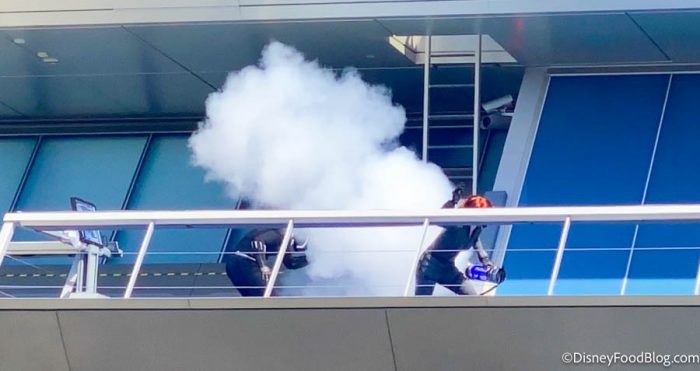 We’re kicking things off as we catch Spider-Man swinging between the buildings throughout the day. And, no, that’s not a stunt person with a massive amount of endurance — it’s an animatronic! OKAY, Disney!