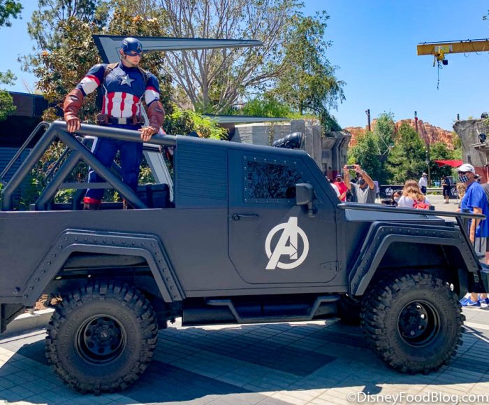 But don’t worry, the OG Captain America is hanging around as well. We spotted Cap chilling on the back of an Avengers vehicle.