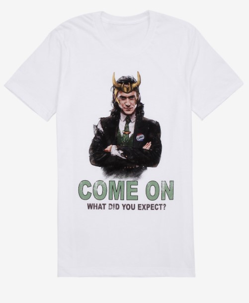 This shirt is cream-toned and features what Loki’s voter poster might look like. It is $24.90, and already sold out in some sizes.