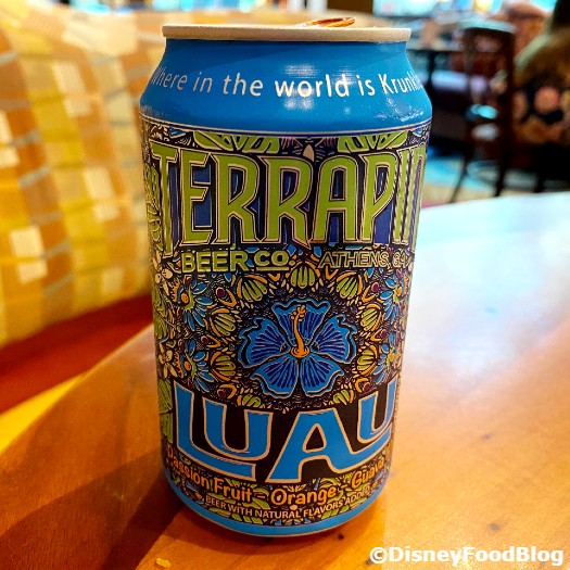 We were here to channel some Poly favorites, so we started off by drinking the Terrapin Luau Krunkles Passionfruit Orange-Guava IPA. Yep, that’s POG as in Disney’s delicious, scrumptious, SO yummy POG Juice, the iconic tropical drink combo of passionfruit, orange, and guava. It goes by lots of names — Jungle Juice, Florida Sunshine, and more. But it’s a breakfast staple all around the parks and resorts and is beloved by many!