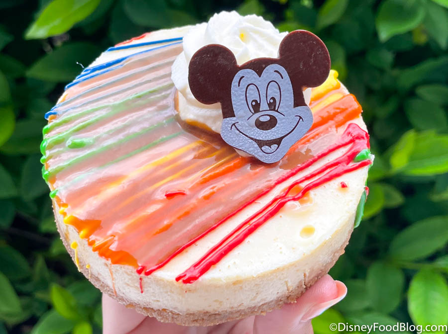 At Beach Club Marketplace, we noticed a rainbow Mickey Cupcake and Caramel Cheesecake up for grabs! So of course, we got ’em both.