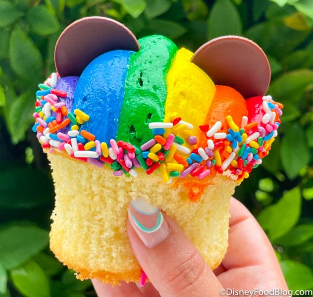 It tasted exactly like the vanilla Mickey Cupcake you’d get here any day, but with rainbow decorations. Just a heads up: these cupcakes tend to be icing heavy and SUPER sweet — so keep that in mind if that’s not your thing!