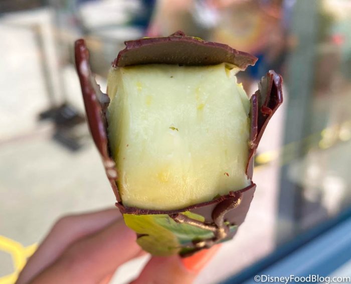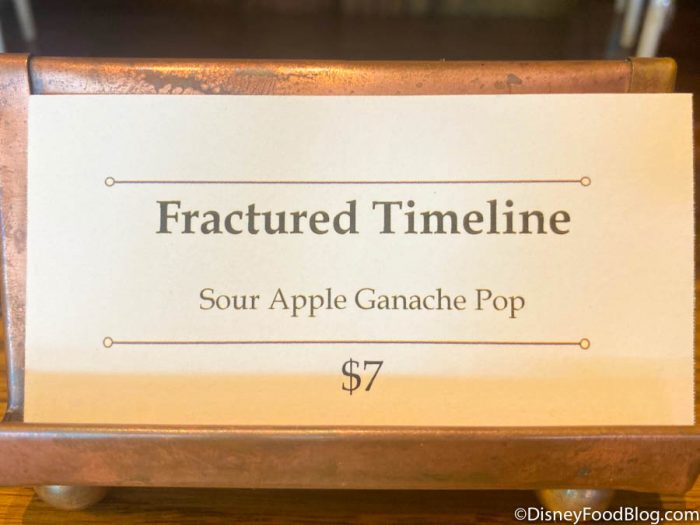 Next, we popped on over to The Ganachery to grab the Fractured Timeline. That’s a sour apple ganache pop, and it’s $7!