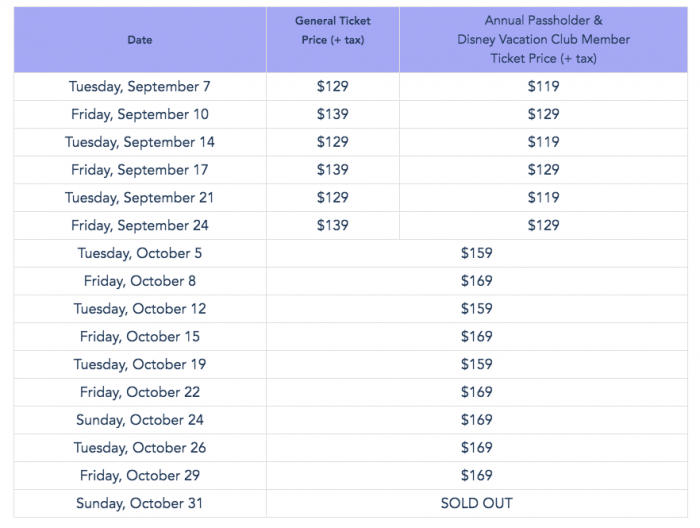 However, there are still PLENTY of dates with open availability! You can check out the full calendar (with prices) here. We’ll keep bringing you the latest BOO Bash news, so stay tuned to DFB!