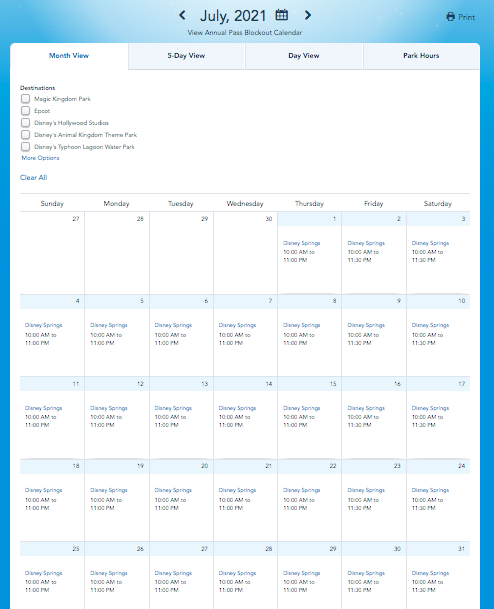 …and into August! You’ll want to note that hours appear to revert back to the 10PM/11PM closing times on August 15th. However, we could see them extend as we get closer to that date.