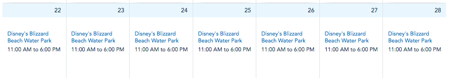 Lastly, Blizzard Beach’s hours are 11AM-6PM. Hours have not yet been released for Disney Springs, but the week prior, it will be open from 10AM-10PM from Sunday-Thursday and 10AM-11PM on Friday and Saturday. We’ll let you know if that continues to be the case.