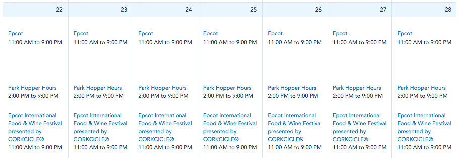 Meanwhile, EPCOT will be open from 11AM-9PM. And as far as special events go, this park is hosting the 2021 Food and Wine Festival!