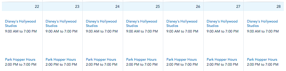 Disney’s Hollywood Studios will be open from 9AM-7PM…
