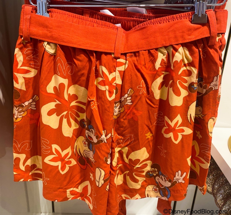 We’re loving these easy-breezy beach shorts, too! Bright red and covered with tropical flowers and Minnie Mouse, you can purchase a pair for $34.99!