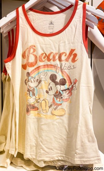 Seen at Legends of Hollywood in Disney’s Hollywood Studios, the new collection is all about sunny style for a hot summer day, like this tank top that shows Mickey and Minnie embracing their “Beach Vibes”! Grab one today for $29.99!