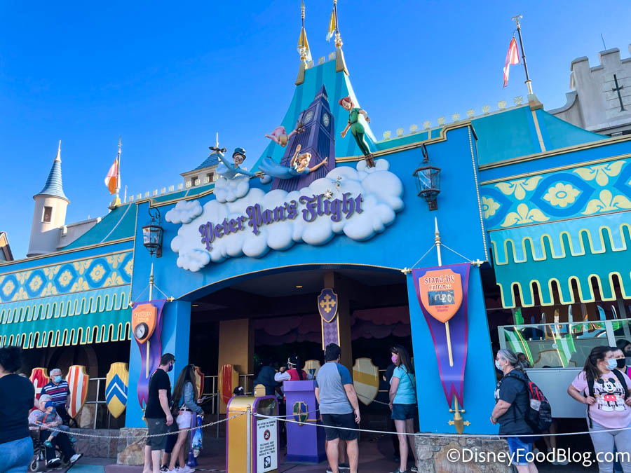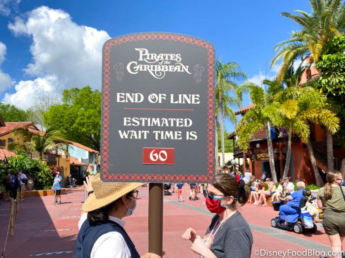 Rides in the 30s range included Pirates of the Caribbean at 34 minutes, Peter Pan’s Flight at 33 minutes, and Astro Orbiter at 30 minutes.