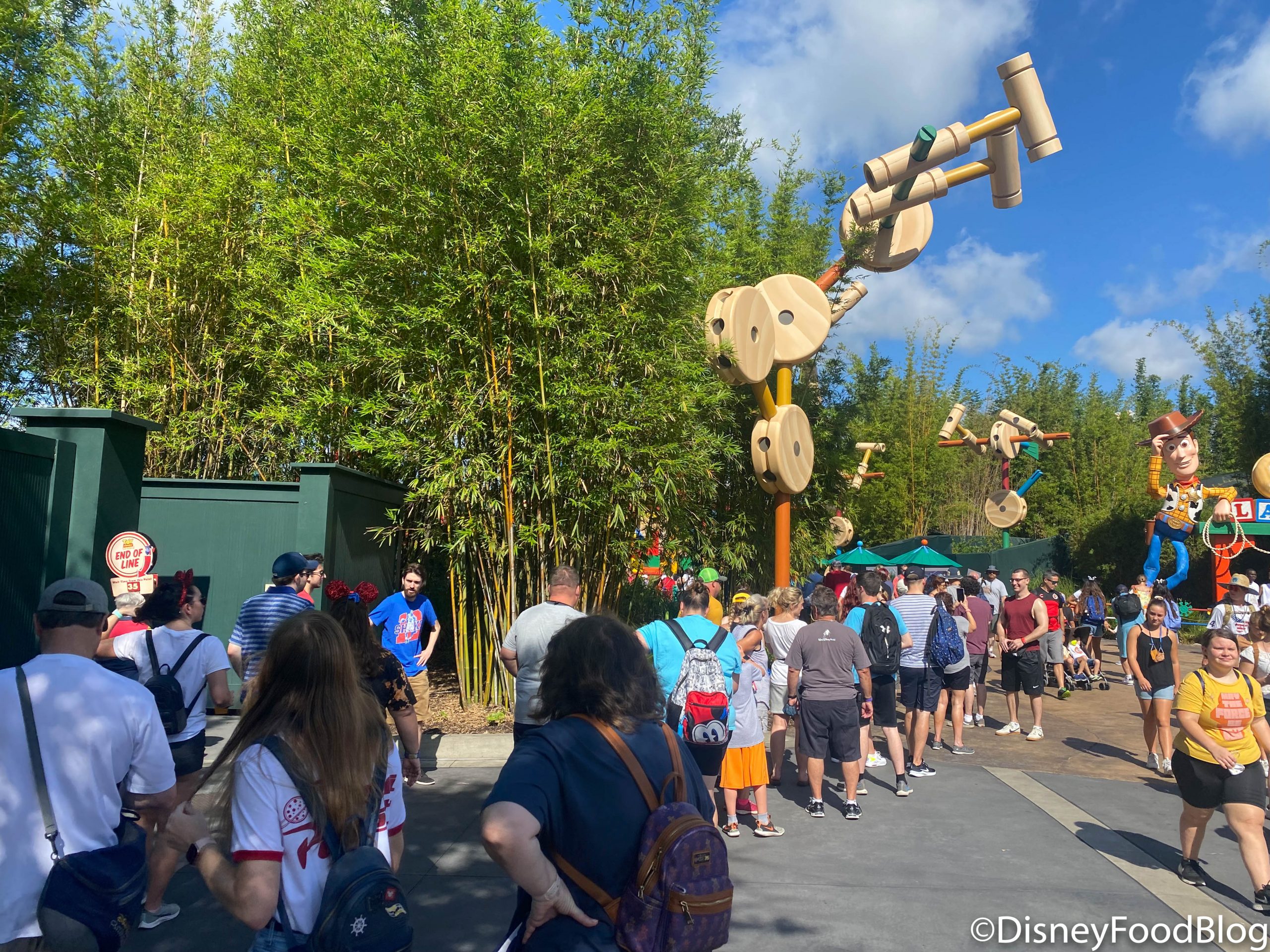 Over in Disney’s Hollywood Studios, we saw very long lines at popular attractions like Toy Story Mania leading guests out of the land…