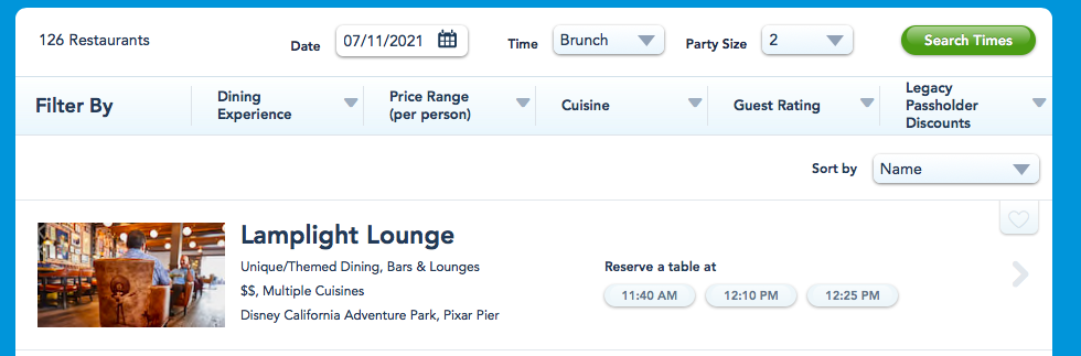 That’s right — you can now make dining reservations for some more Disneyland favorites. What’s available? First, you can now make reservations for brunch at Lamplight Lounge in Disney California Adventure Park.