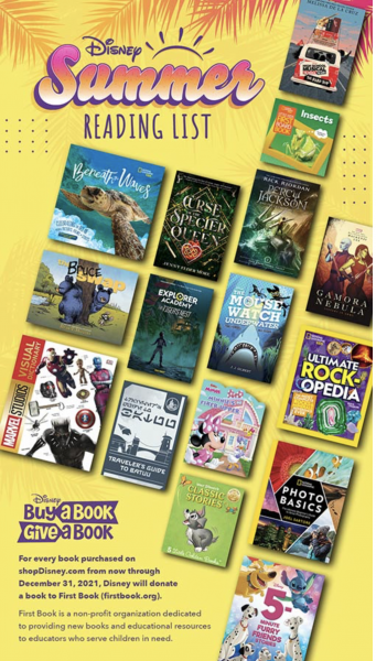 Now for every book purchased through December 31, 2021 on shopDisney’s Buy a Book Give a Book Program, Disney will donate a book to First Book, a nonprofit that helps provide books and educational resources to children in need.