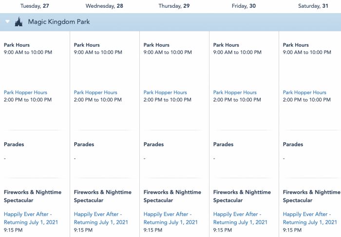 There were a few flares around the holidays, as well as some random fireworks testing, but not a full show! Recently we learned that fireworks will be returning to Walt Disney World on July 1st, and now we have official times for the shows! Take a look.
