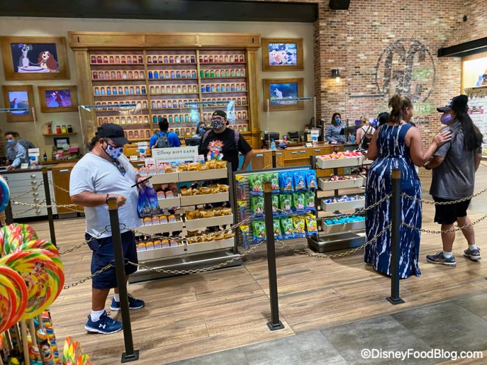 The social distancing markers were gone in line at World of Disney…