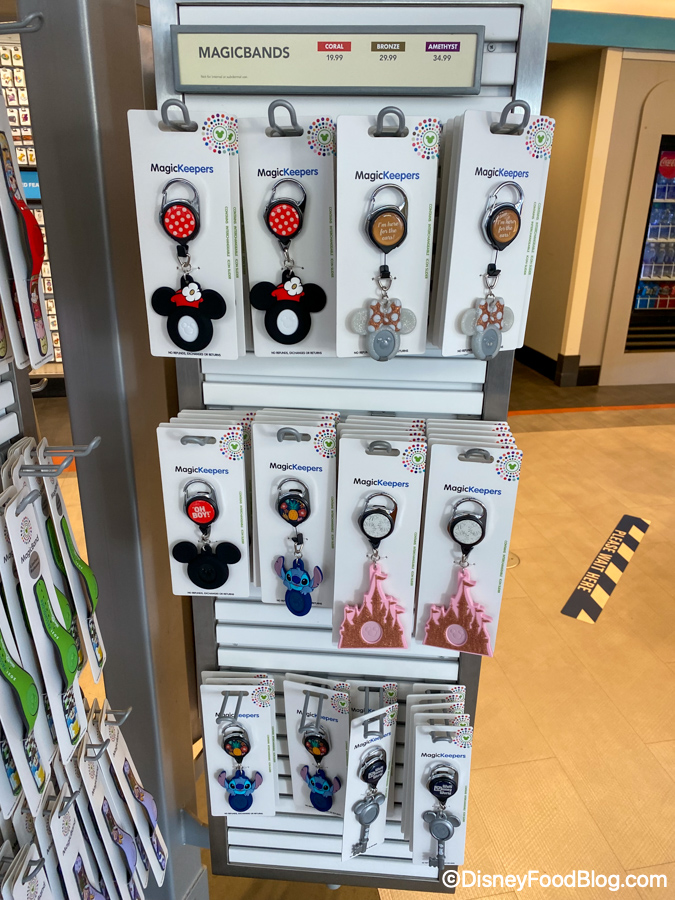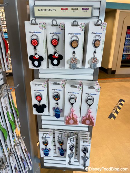 We saw the new MagicBand holder key chains in Gateway Gifts in a variety of different styles!