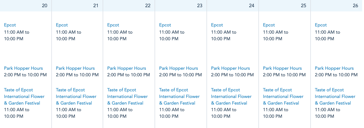 EPCOT will be open from 11AM-10PM daily. Remember that we’re getting closer and closer to the end of the 2021 EPCOT International Flower & Garden Festival, which will conclude on July 5th! The festival will be open from 11AM-10PM daily as well.