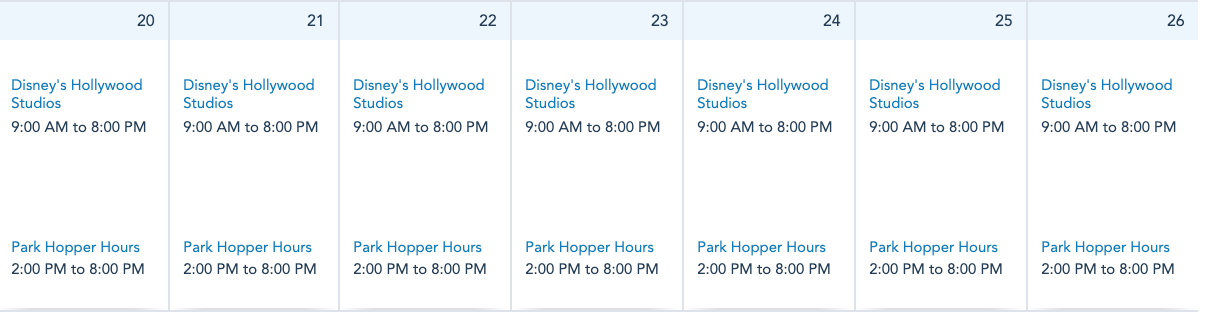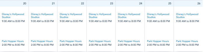 Disney’s Hollywood Studios will be open next week from 9AM-8PM daily.