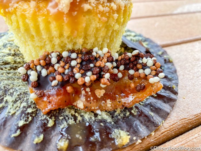 Recently, the Bacon of DOOM dish (a.k.a. EPIC chocolate-covered bacon) returned to Disney Springs. Earlier this month, we also got to try the limited time bacon & bourbon spiked shake in Disney’s Art of Animation Resort (it’ll be there through this month so act fast). But now ANOTHER bacon treat has made its way to Disney World — specifically in Disney’s Polynesian Village Resort — and this time it’s in the form of a cupcake!