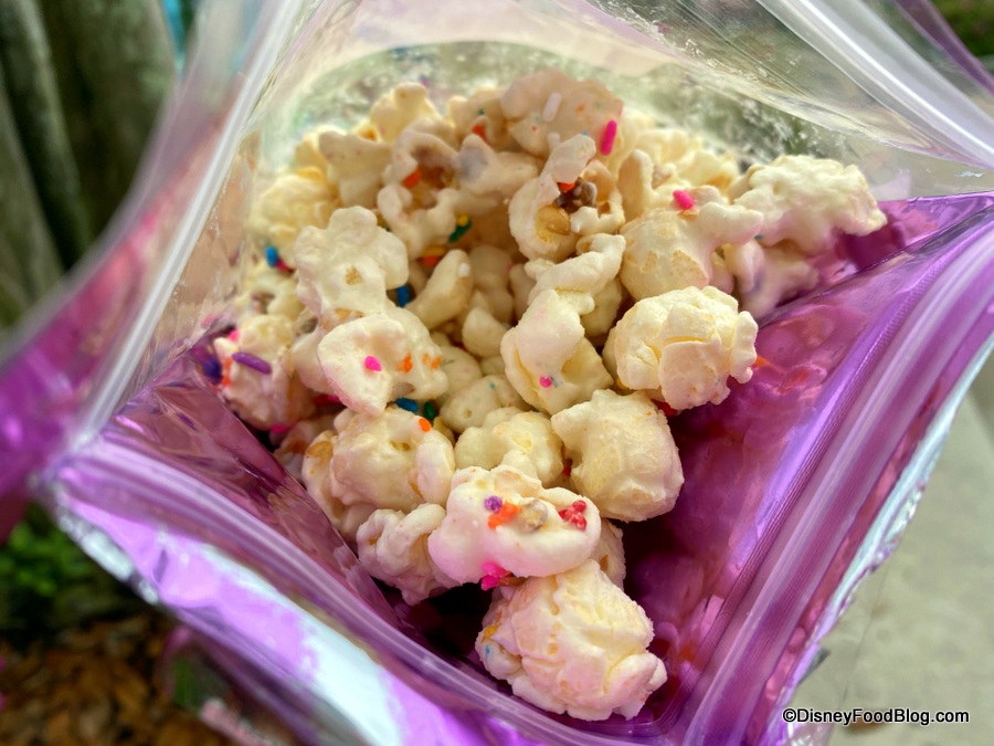 And a few months ago, we tried the Springtime Popcorn (aka BIRTHDAY CAKE popcorn) at the Hot and Fresh Popcorn Kiosks. And a few months before that, the seasonal flavor was Holiday Festive Popcorn (with peppermint!).