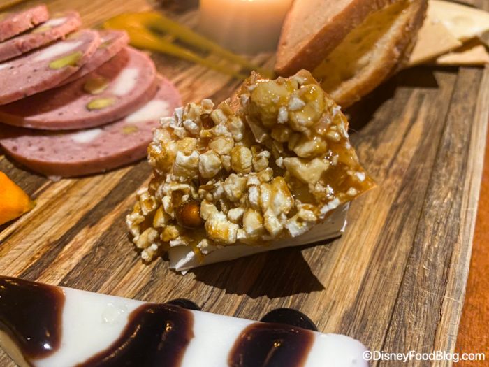 As for the cheeses, the Canadian Triple Cream Goat Brie was our favorite. It was super creamy and buttery, and went great with the sweet and salty popcorn on top!