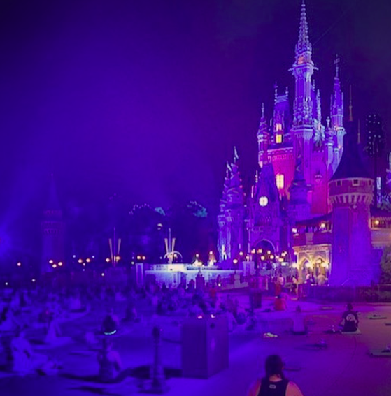 That’s right — Disney Cast Members had a sunrise yoga session outside of Cinderella Castle before Magic Kingdom opened to celebrate International Yoga Day!