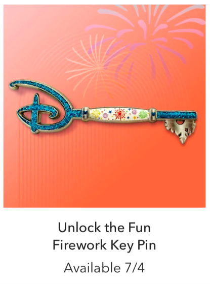 Disney’s collection of key pins is adding a new member this July, and we think it could be in honor of the fireworks’ return to Disney World and the 4th of July! It’s called the “Unlock the Fun Fireworks Key Pin,” and it will be available on shopDisney starting July 4th!