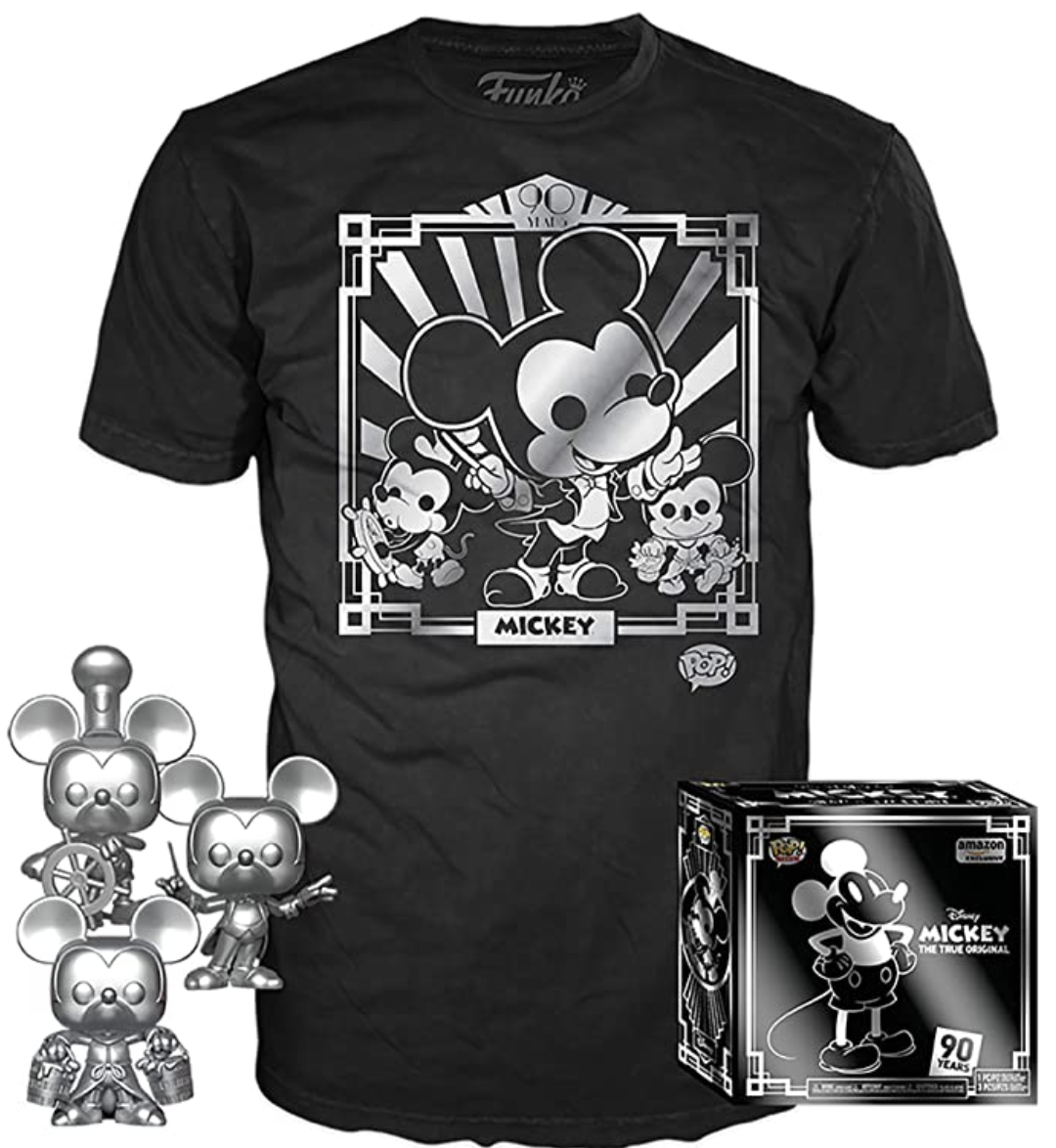 If you’re a big Funko Pop! fan, check out this Amazon Exclusive Funko Pop! 3 Pack & Tee: Disney – Mickey’s 90th T-Shirt and Silver Steamboat Willie, Conductor, and Apprentice.