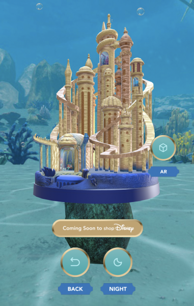 As we’ve seen in the past, shopDisney has also introduced the augmented reality experience for the Disney Castle Collection. On the website, you can go under the sea and see Ariel’s Palace in 3D as well as place Ariel’s Palace in your own home.