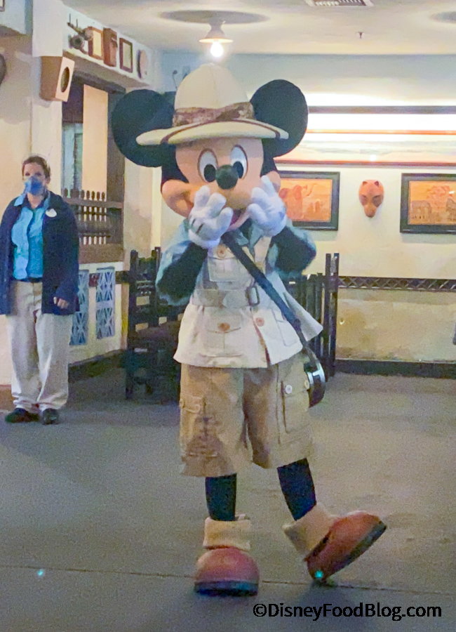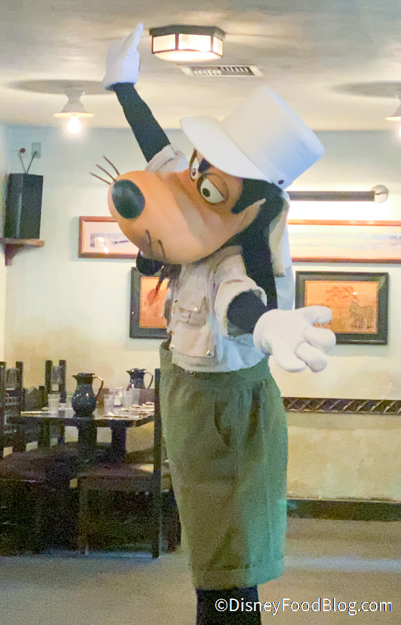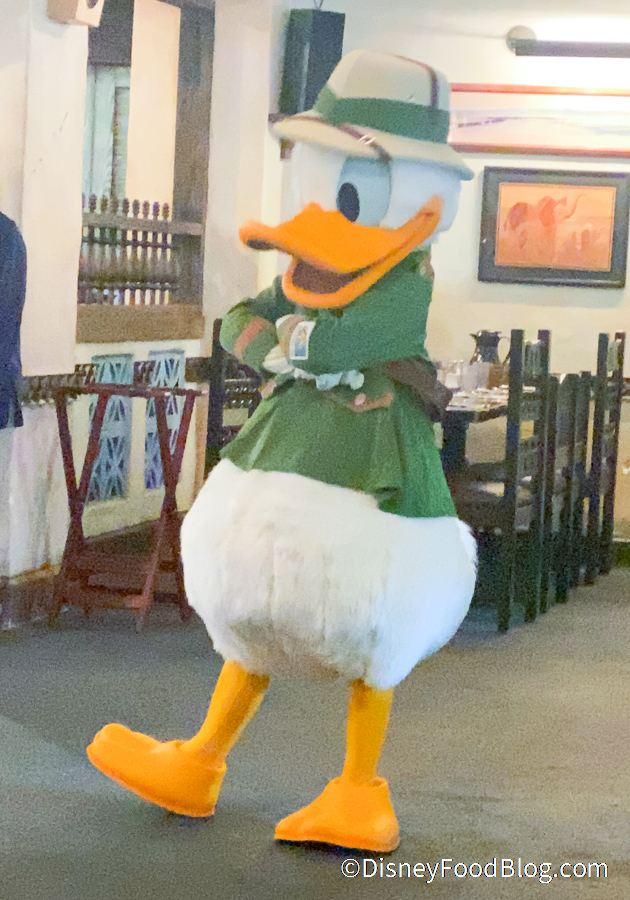 Let’s be honest one of the best parts of this dining experience is seeing Donald and all his friends all decked out in their safari gear ready to go on an adventure! Well, we have good news we caught all of their appearances to show you! First and most importantly we saw the star of the show, Donald!