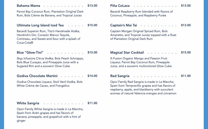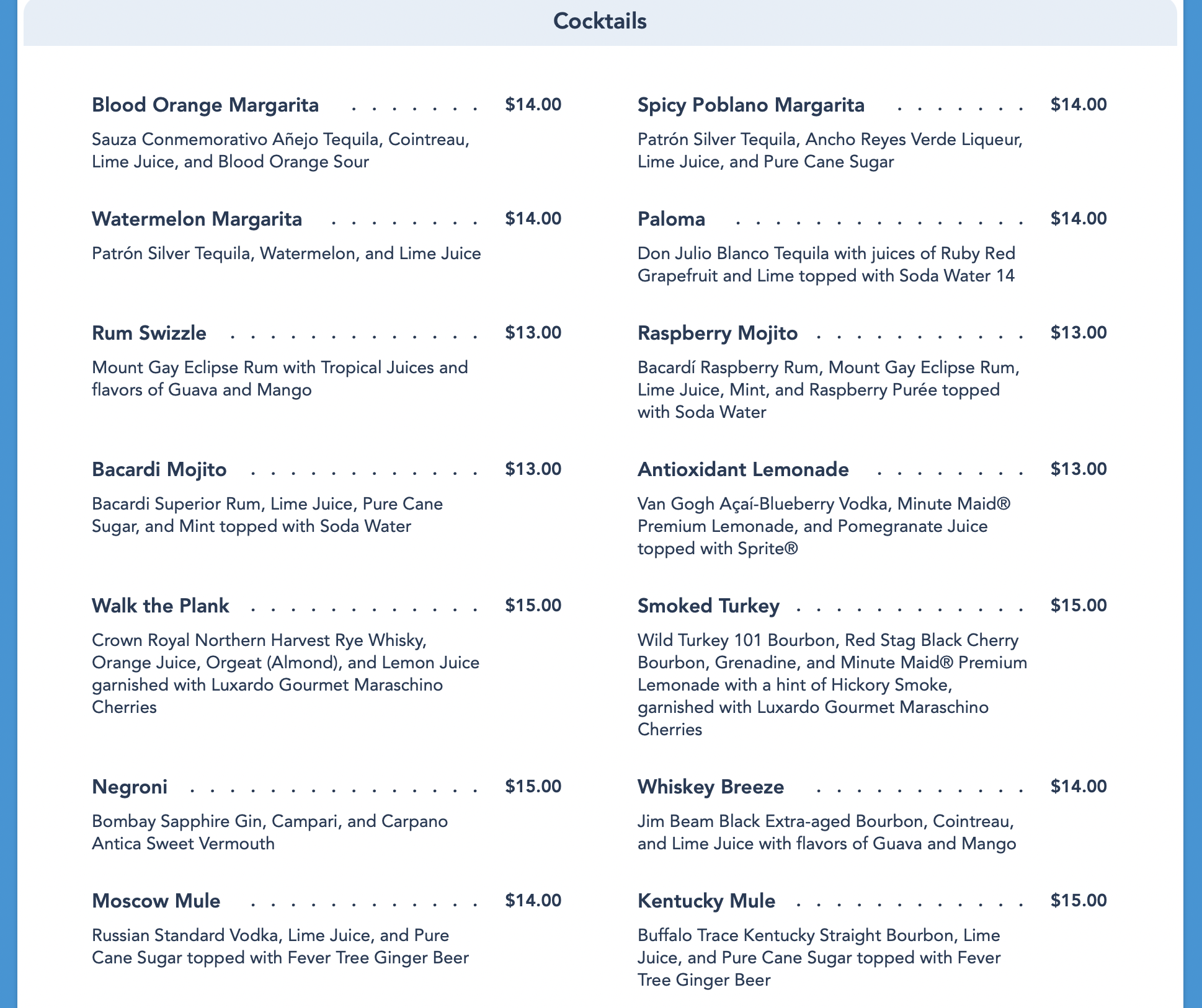 There are a variety of standard drinks as well as a few non-alcoholic mocktails…