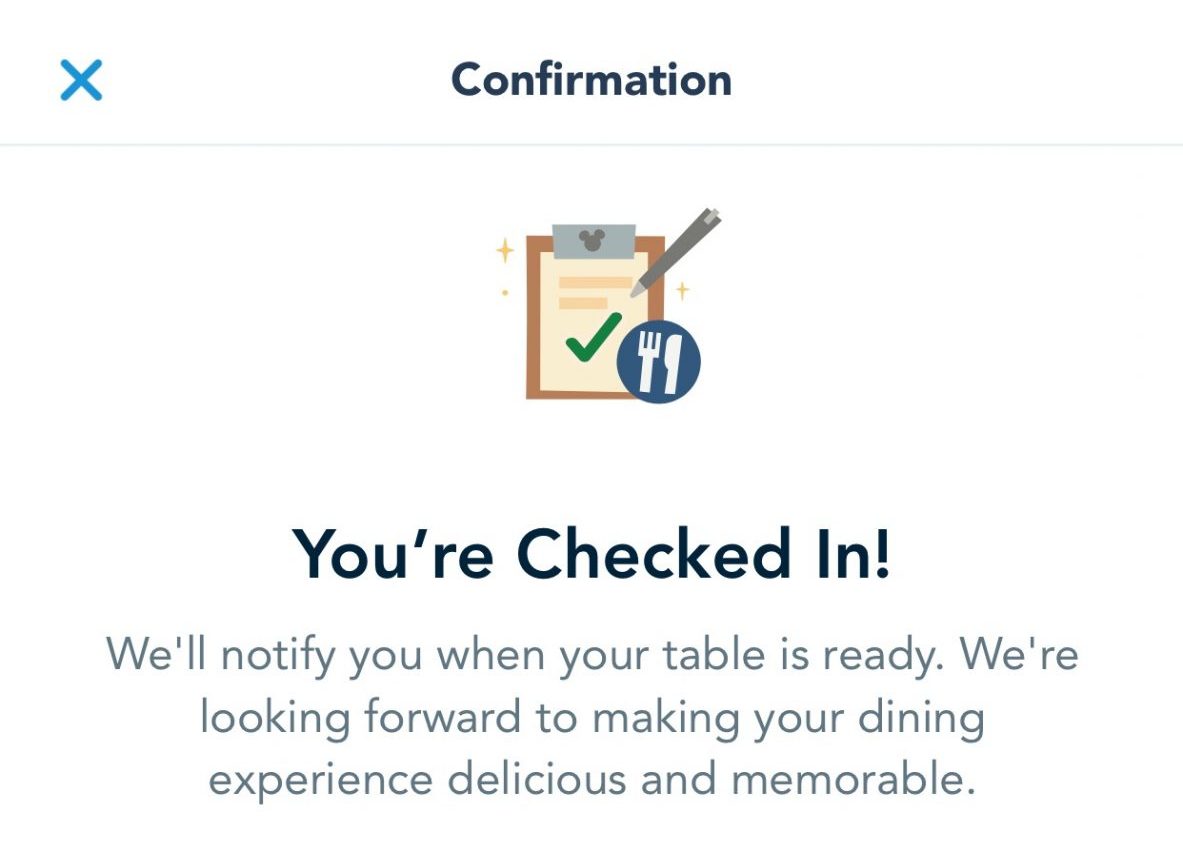 Similar to other Disney Table service restaurants, the check-in process is very simple and straightforward. You will go to your Dining reservation in the My Disney Experience App and check-in there.