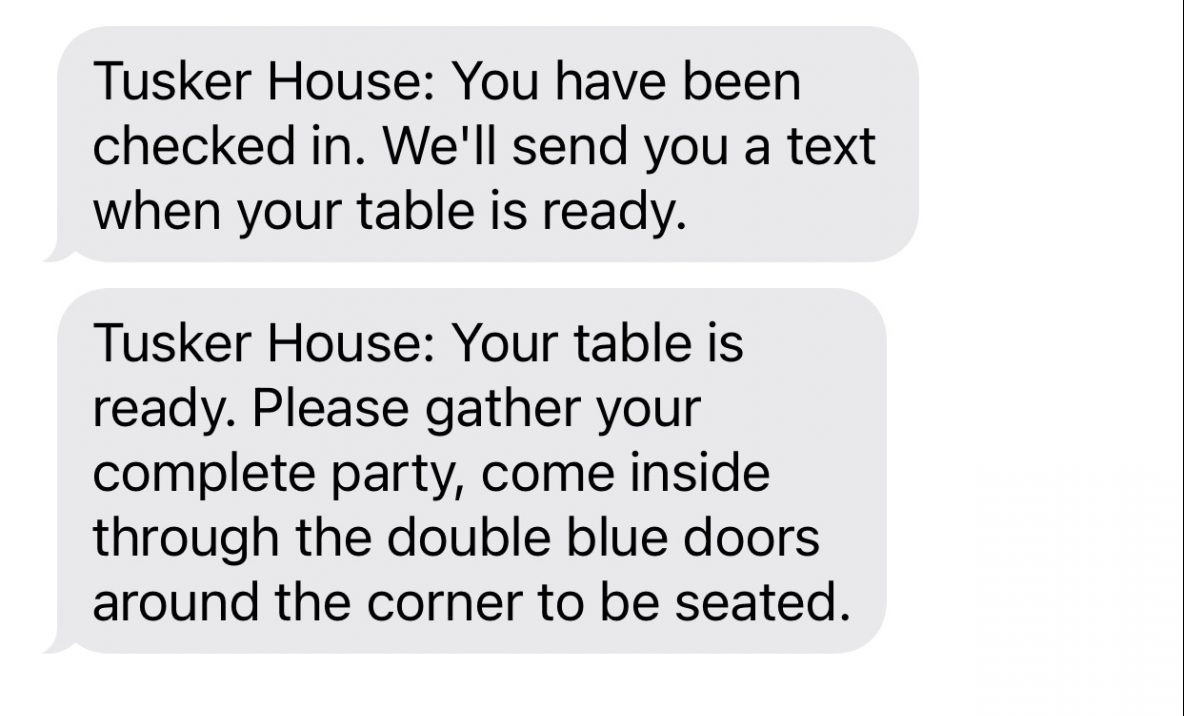 Once you have checked in on the App you will receive a notification and text that you are checked in and then another notification once you are ready to be seated.