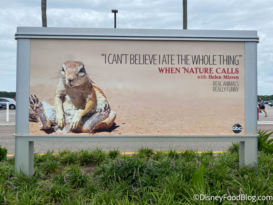 And, on our way out we noticed a new billboard in the Hollywood Studios parking lot adverting Disney’s new show When Nature Calls with Helen Mirren.