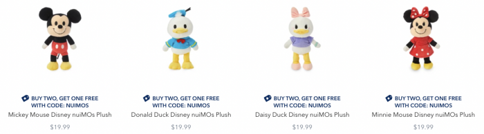 That being said, there is still one way to score them at a discount — all Disney nuiMOs are Buy Two, Get One FREE on shopDisney right now, so you can bring the cost down to about $13 per plush if you get three online!