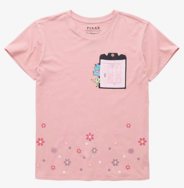 If you’re looking for a Boo-inspired t-shirt, Box Lunch has the exclusive Our Universe Disney Pixar Monsters, Inc. Floral Pocket T-Shirt. This pocket tee features Mike and Sulley peeking out from behind Boo’s door, with a floral design on the bottom.