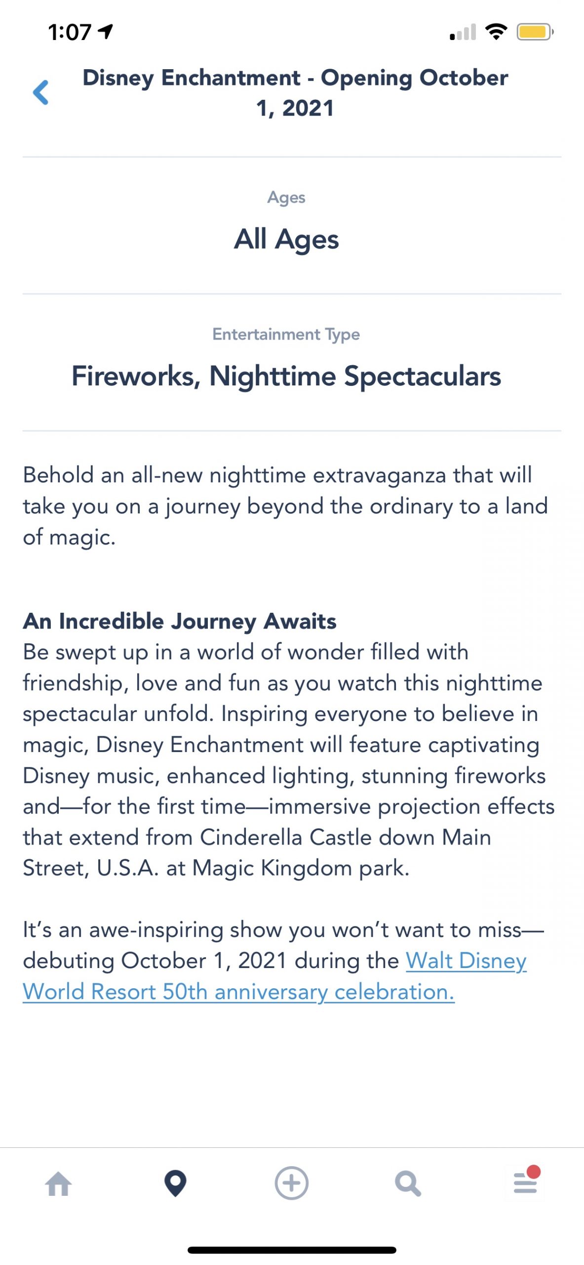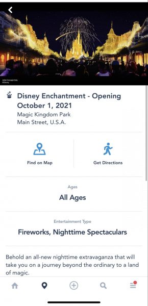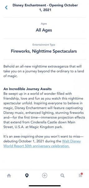 As of today, the Disney Enchantment nighttime spectacular opening on October 1, 2021 is now listed on the My Disney Experience app.