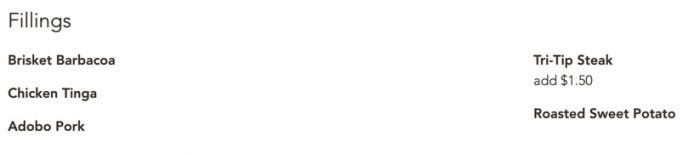 For any of your entrees, you get to pick the filling. (Think like Chipotle or any other “build your own” style Mexican joint, but way fresher and yummier.)
