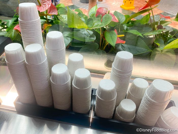 Take, for instance, ABC Commissary in Disney’s Hollywood Studios. Guests can once again fill little ramekins instead of picking up little packages of condiments.