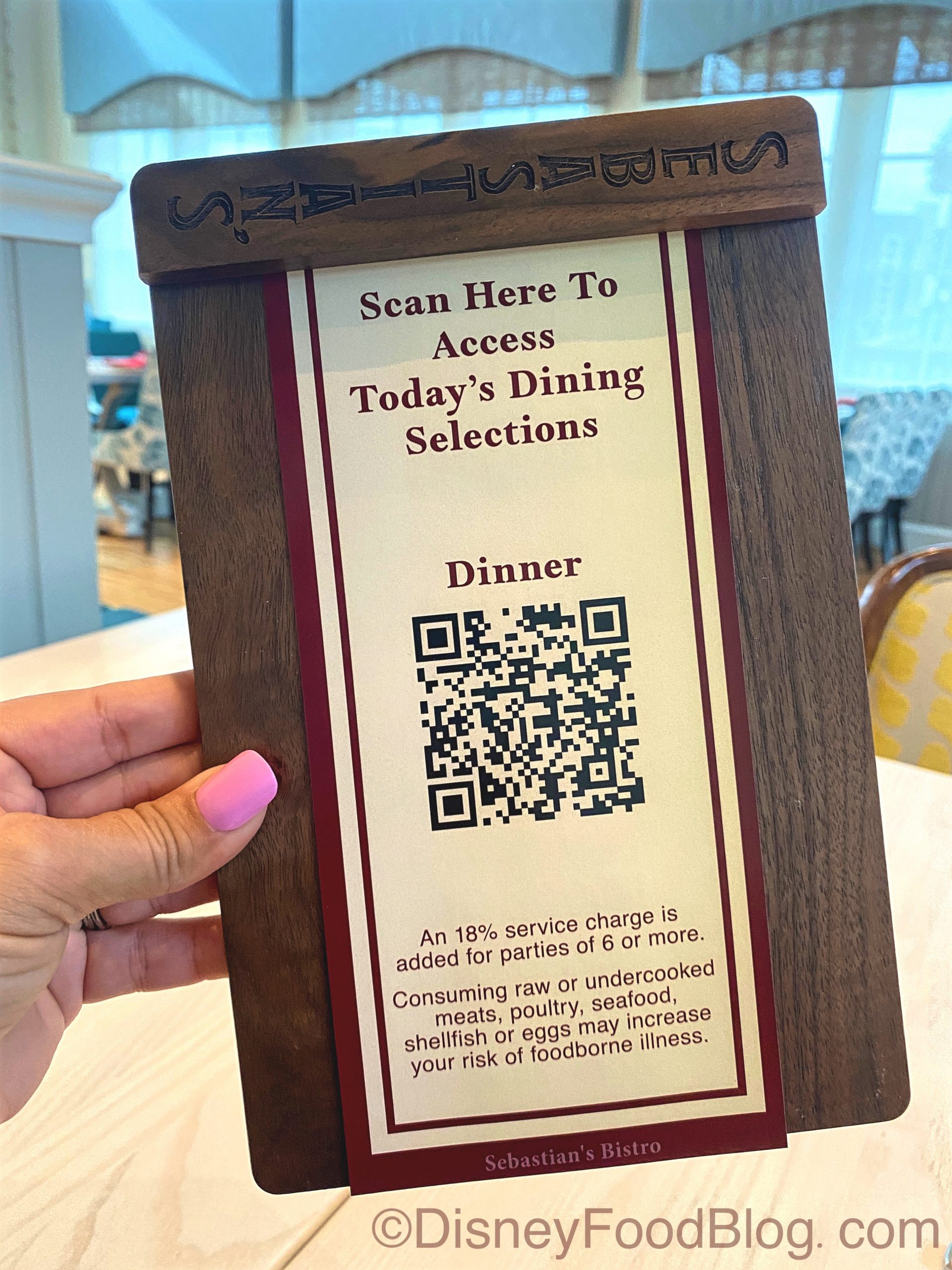 And then it was time to eat! Sebastian’s Bistro now features a brand new family-style dinner, meaning all of the food will be brought to your table in large portions for the table to share. When we got to the table, we scanned the QR code for the menu!