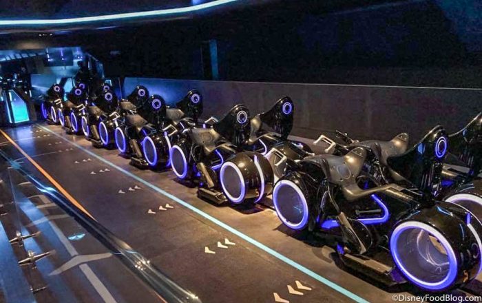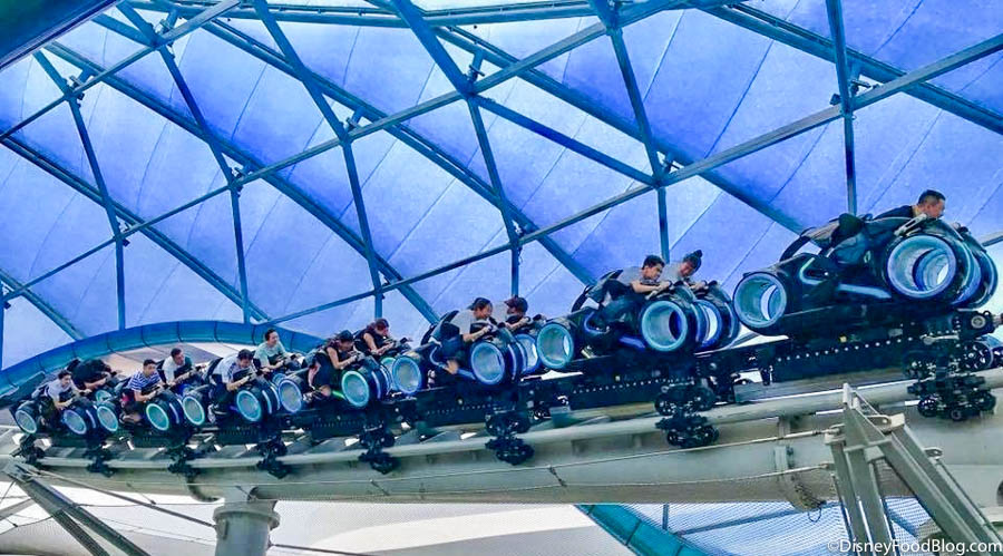 TRON Lightcycle Run is an existing ride in Shanghai Disneyland, and it’s expected to be pretty similar in Disney World. The roller coaster uses panels on the outdoor portion to show different colored lights, and light plays a big role during the whole ride, both indoors and out.