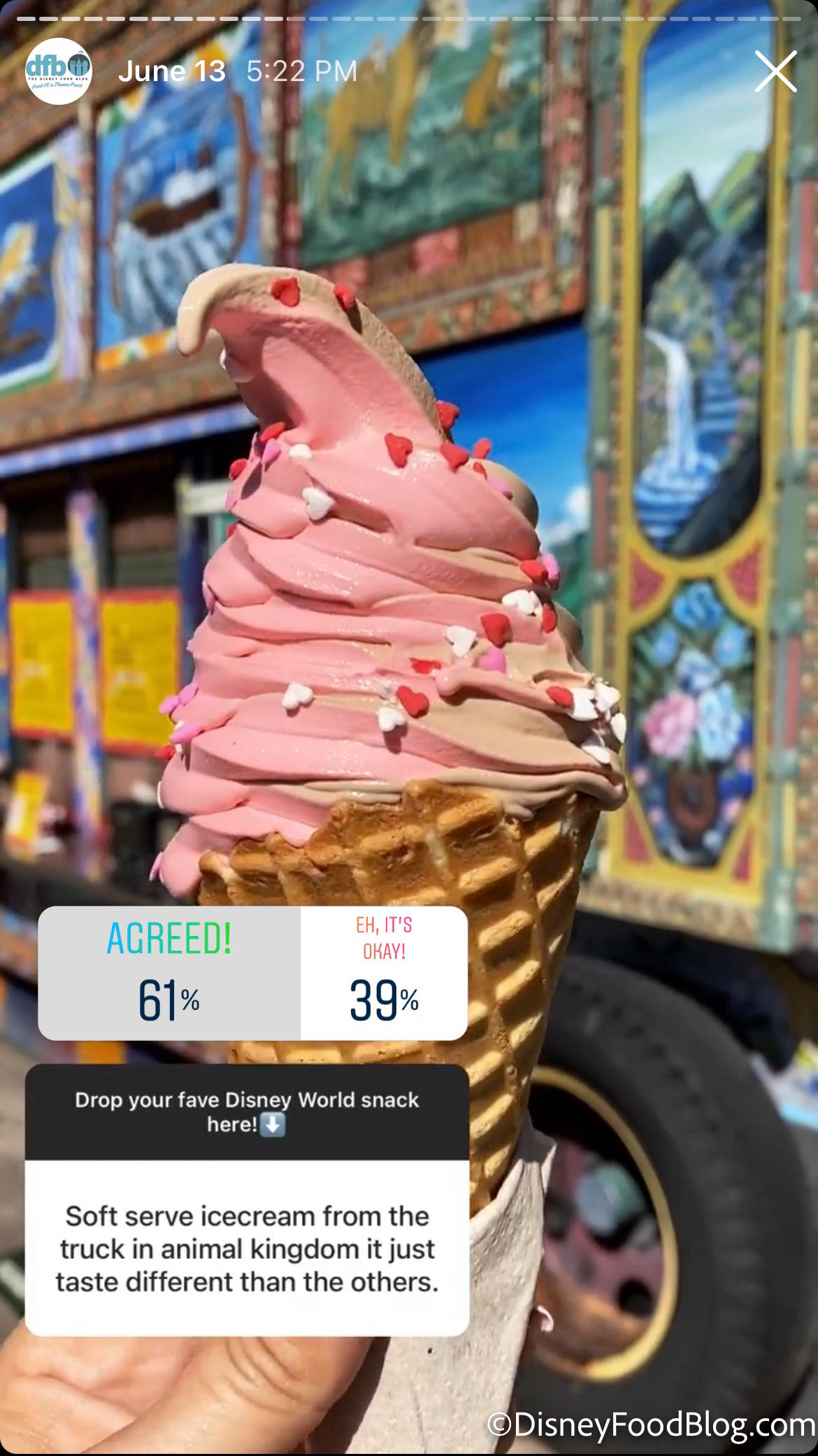 61% of you also agreed that the soft-serve ice cream from the Anandapur Ice Cream Truck in Asia in Animal Kingdom is superior to other soft serve ice creams at Disney for a tie with the Ronto Wrap. A soft-serve waffle cone costs $4.99.