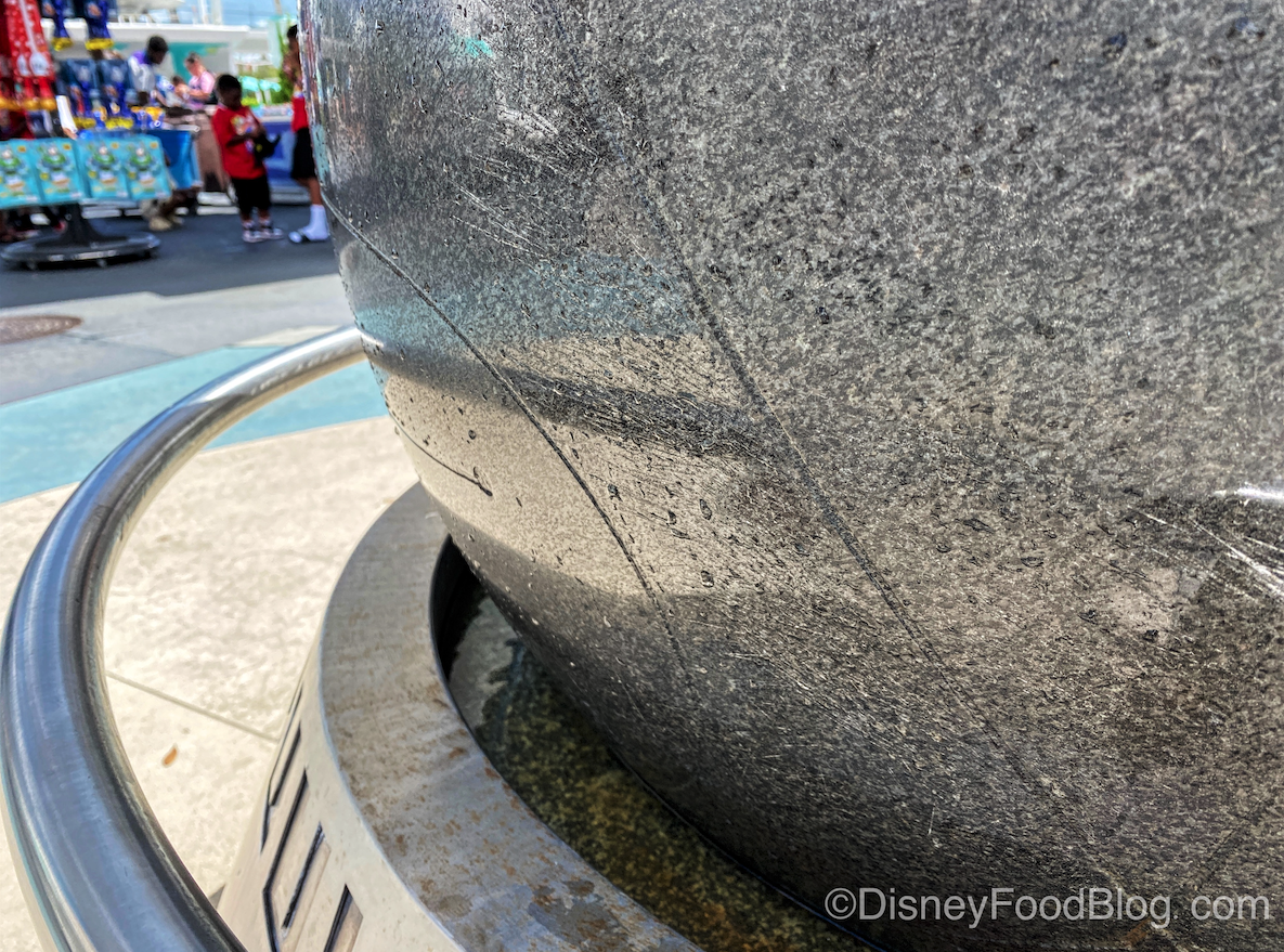 The Kugel Ball fountain in Tomorrowland has been turned off since the park closures in March of 2020. The massively heavy ball, a staple of Tomorrowland’s futuristic decor, was recently turned back on!