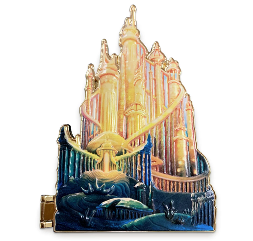 Or, head under the sea with the Ariel Castle Pin. This super-detailed pin hinges open to give you a peek INSIDE King Triton’s castle!