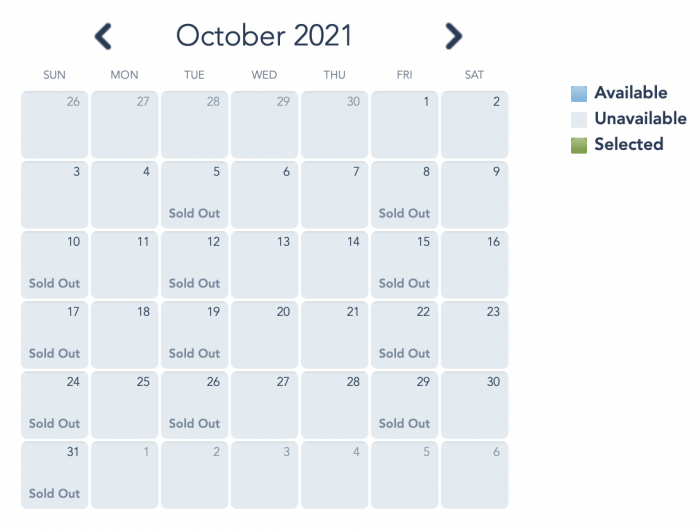 Moving on to September, many dates were previously available. But now, all September dates are sold out.