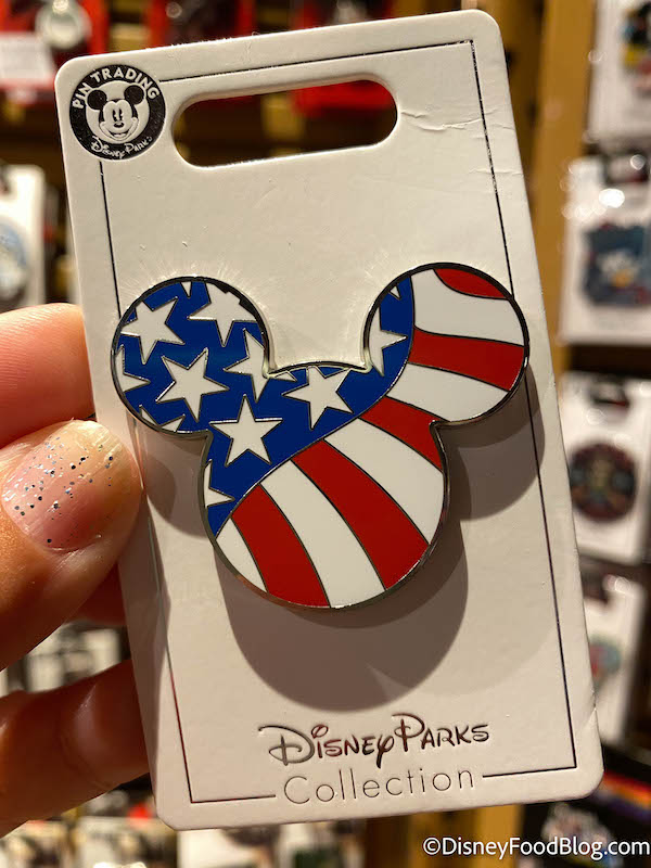 Now we have a few merchandise updates! At Riverside Depot, we found this patriotic Mickey pin for $9.99.