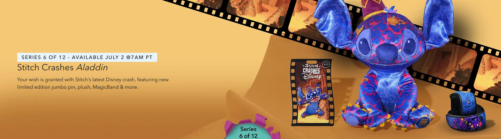We recently had a first look at the newest edition of Stitch Crashes Disney, Aladdin edition! Now we have a release date of July 2 at 7AM PT on shopDisney.
