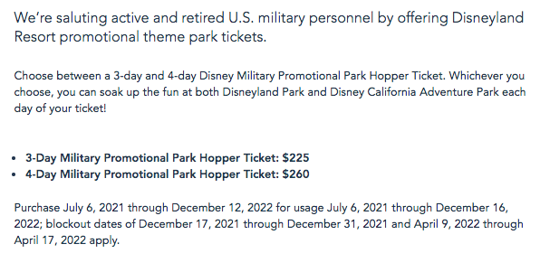 Eligible guests can purchase these tickets between July 6th, 2021 through December 12th, 2022 for usage starting July 6th, 2021 and going through December 16th, 2022. Select blockout dates apply.